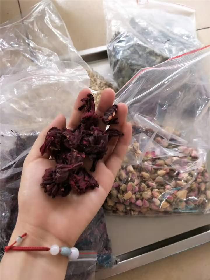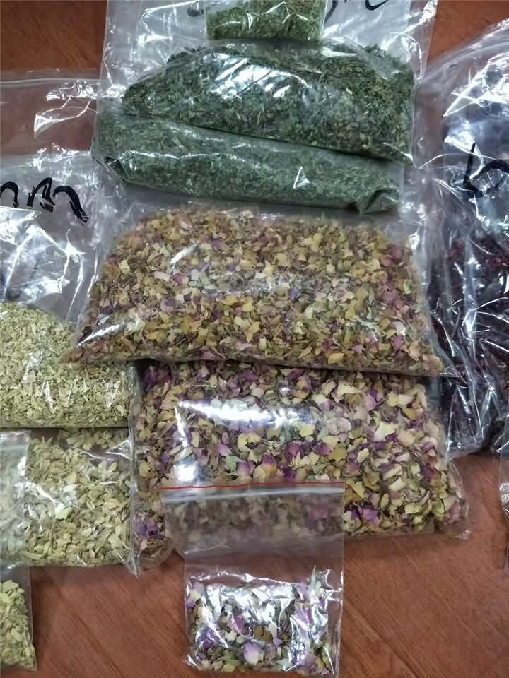 旭眾不銹鋼破碎機(jī)破碎篩網(wǎng)孔徑標(biāo)配6mm或者8mm,另可定制10/12/14/16/18/20/30,一般不定制小于6mm的孔徑,遠(yuǎn)在新疆的劉老板寄了他家烘干好的玫瑰花等物料來到現(xiàn)場,并直觀了用破碎機(jī)破碎后的效果: