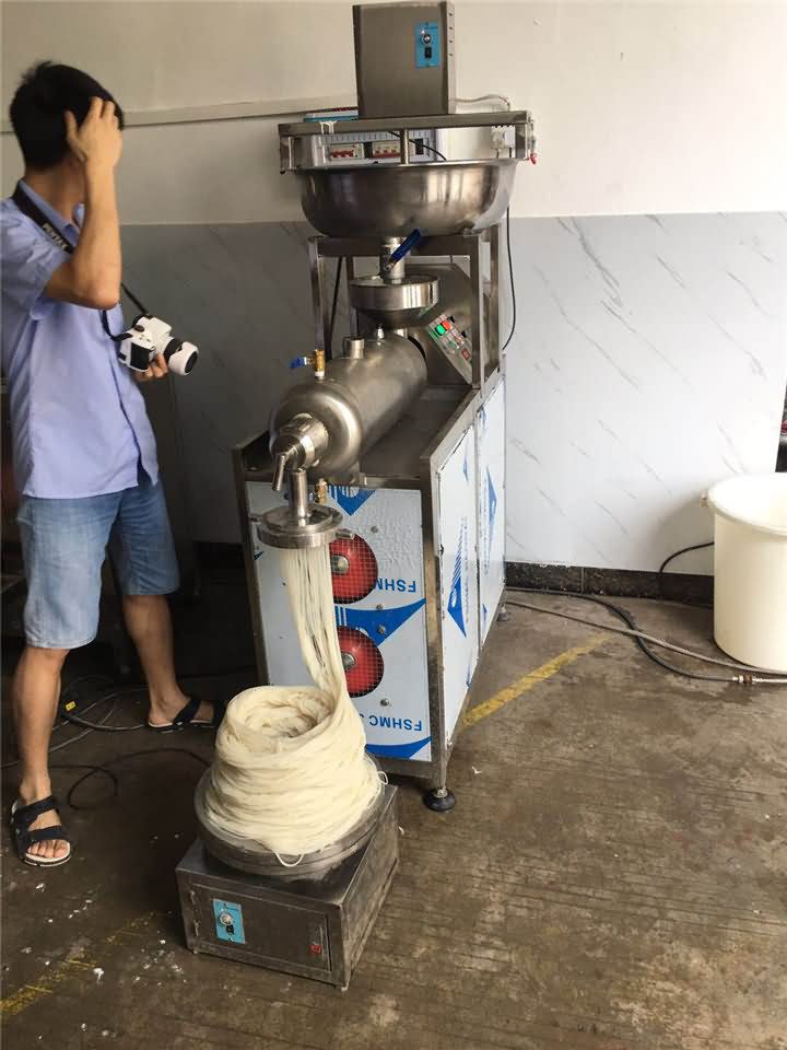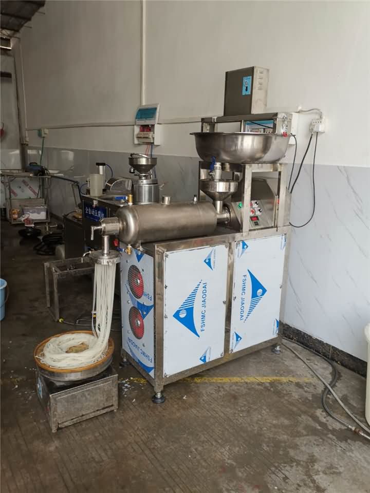 小型米粉機(jī)的工序先將米粉磨成米漿,往米粉機(jī)加入水后等溫度達(dá)到100°后,再由人工將米漿倒入入漿口,稍等片刻就可以自動(dòng)成型米粉,然后有的客戶就認(rèn)為倒米漿這個(gè)步驟比較麻煩,想要能自動(dòng)倒?jié){的設(shè)備搭配米粉機(jī)一起。于是米粉機(jī)研發(fā)部門最終研發(fā)出自動(dòng)下漿攪拌一體的米粉機(jī)器!客戶用起來還很滿意,這不剛剛發(fā)來了他在操作米粉機(jī)做米粉的效果:
