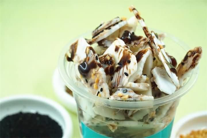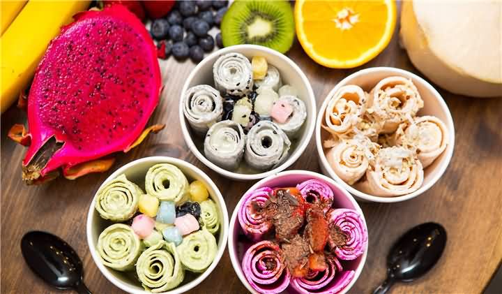 熱鬧的街市,一群放學(xué)的孩子圍著一個炒冰機,排隊買炒酸奶,各種味道的奶片再撒上一點彩色糖果,這個色彩與味蕾的誘惑誰能抵擋得了