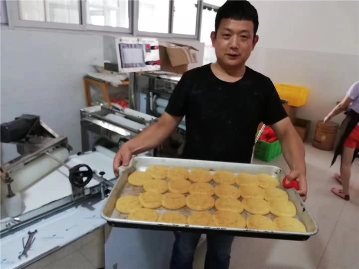 又一家食品廠定購的酥餅機(jī)調(diào)試完畢!