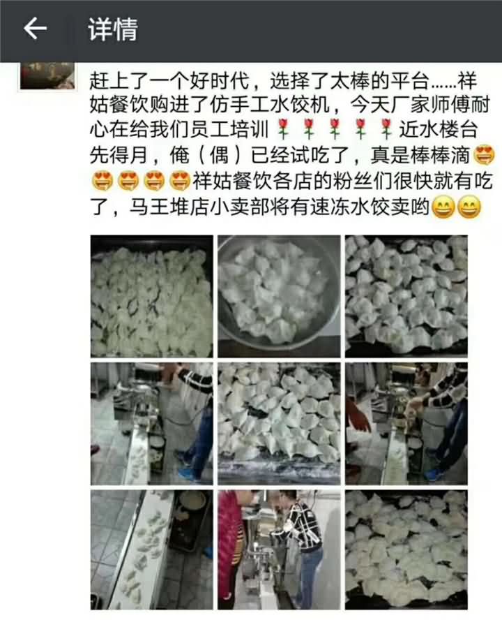 香菇餐飲說道趕上了一個好時代,選擇了好的平臺,購進了好的仿手工餃子機?。?!水餃生產量上來了,準備做速凍水餃經營模式。感謝客戶對仿手工餃子機的認可,再次祝香菇餐飲日日蒸上,生意紅紅火火!