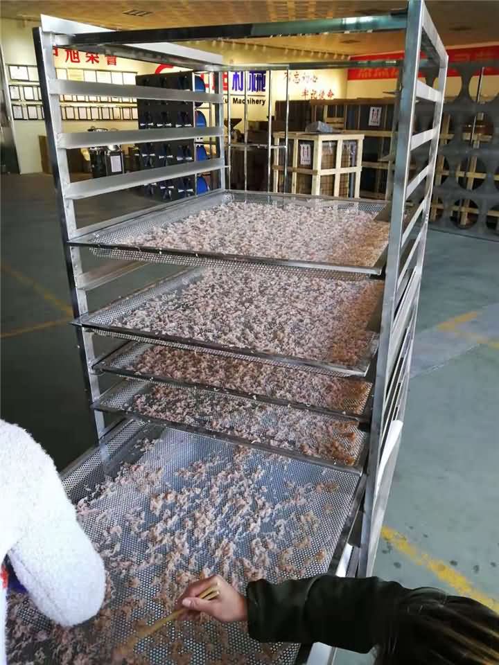 熱泵烘干機(jī)干燥大蝦智能控制,節(jié)能無(wú)污染,可分階段設(shè)置溫度、濕度、干燥時(shí)間等,熟練掌握烘干工藝,干燥出的大蝦品質(zhì)好,附加值高。且烘干過(guò)程無(wú)需專人看管,省工省力。把蝦米放到烘干盤上,一盤一盤放到烘干架上,然后推進(jìn)烘干機(jī),要適當(dāng)翻動(dòng),使其迅速、均勻干燥。海鮮類產(chǎn)品烘干溫度宜保持低溫狀態(tài),所以建議考慮烘干機(jī)的客戶選擇雙效低溫高溫烘干房一體機(jī)。
