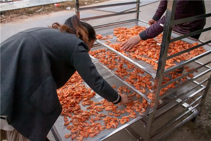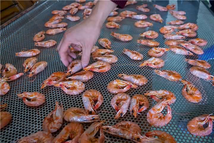 海鮮烘干該選擇什么樣的烘干方式呢?平常的不帶味的食品都是用高溫烘干效果,海鮮如果你還使用高溫烘干就會導(dǎo)致發(fā)臭的問題,那么該如何烘干呢?自然低溫高效烘干房是不錯的選擇!針對海鮮、煙熏肉等食品烘干。那么我們來看看烘干房低溫烘干蝦的前后對比效果: