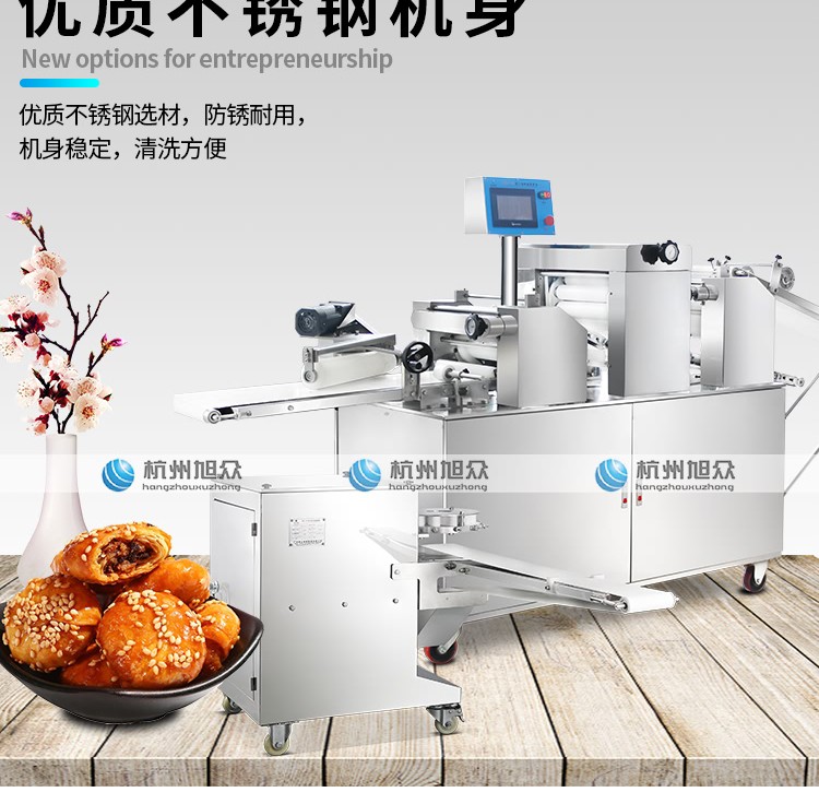 杭州旭眾全自動酥餅機,又稱多功能酥餅機,專業(yè)生產,黃山燒餅、金華酥餅,云南鮮花餅,老婆餅,綠豆餅,糖酥餅,肉松餅,等。