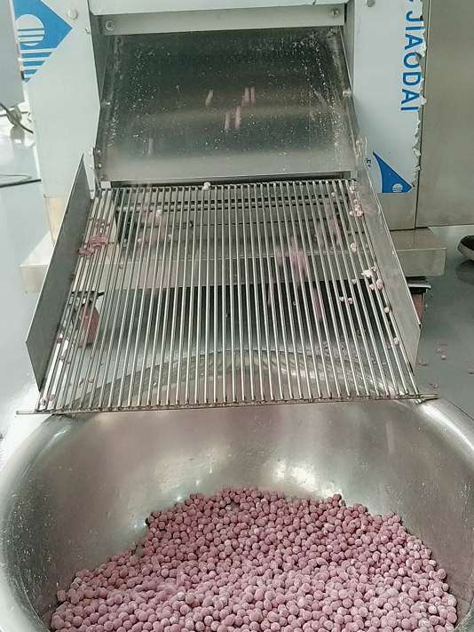 合成的面團可通過旭眾無餡湯圓機分割搓圓成一個個小丸子,一小時可生產0~120kg,規(guī)格6-22mm可定制(注:一臺機器只有一種規(guī)格,所以一定要確定好自己要的規(guī)格)