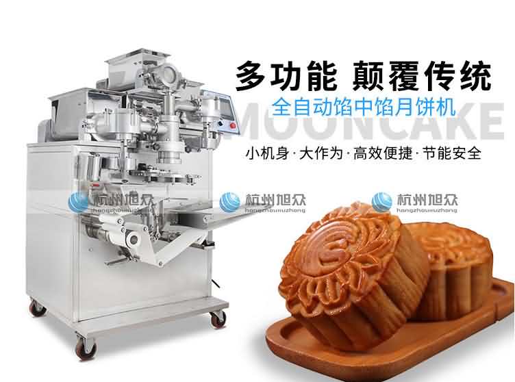 餡中餡月餅機生產線由SZ-66型餡中餡自動包餡機、SZ-64月餅成型機、SZ-08自動排盤機組合,可制作鳳梨酥、夾心餅、南瓜餅、軟餡餅、棗泥餅、麻薯、紅龜粿等各種包餡食品的設備。