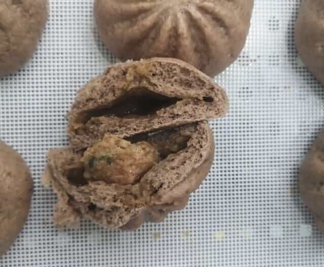 SZ-63包子機(jī)升級(jí)后SZ-612包子機(jī),那么兩者之間區(qū)別在哪里,花紋從九褶變成十二褶,客戶現(xiàn)場(chǎng)試機(jī)SZ-612包子機(jī)做黑米包效果如圖: