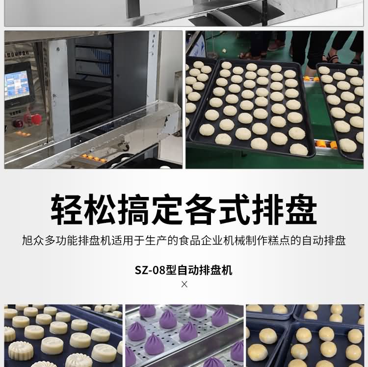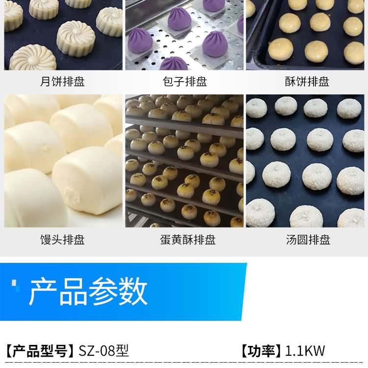 SZ-08型月餅自動排盤機(jī),可同于制作各種月餅。適用于蛋糕房、休閑食品廠、食品加工產(chǎn)、面包房、月餅加工廠、超市、學(xué)校、食堂等各種工作場所。可滿足不同客戶群體。免費(fèi)提供工藝技術(shù)。