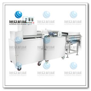 3>、XZ-15全自動(dòng)芋圓機(jī),由出料機(jī)、切刀機(jī)、篩粉機(jī)組合而成,料斗容量大,雙絞龍粗且力度大,出面均勻,不傷面筋,擠出面團(tuán)形狀呈面柱型,切斬采用分段,切刀平整。本機(jī)帶有自動(dòng)篩粉裝置,大大提高成品率的同時(shí)又自動(dòng)篩除多余的干粉。