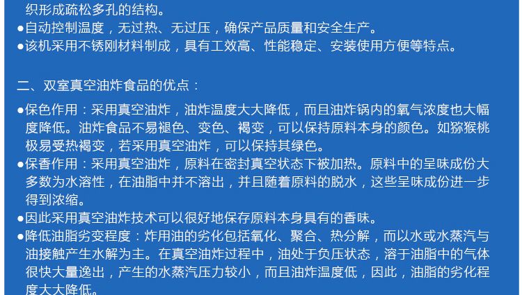 雙室真空油炸食品的優(yōu)點(diǎn)